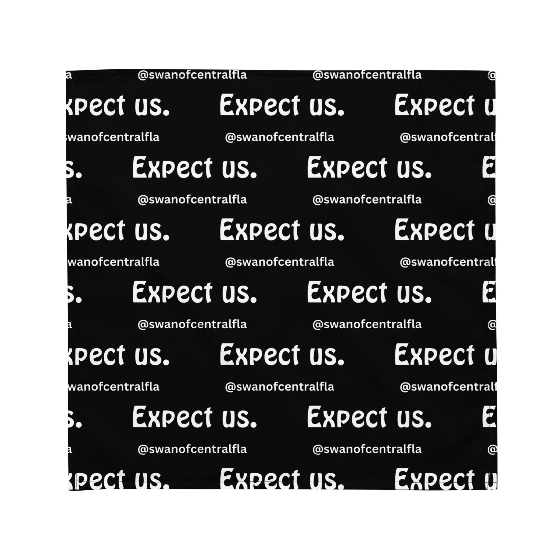Expect us. All-over print black bandana